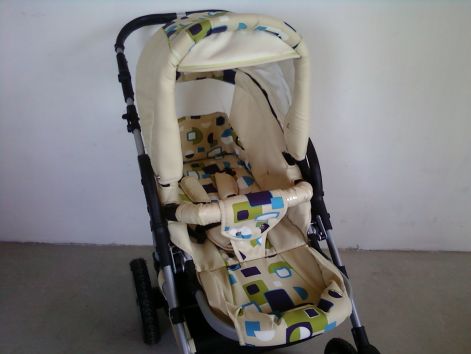 Háttámlája,lábtartója több fokozatba állítható.Háttámla vizszintesig dönthető. 5 pontos,párnázott övvel felszerelt.